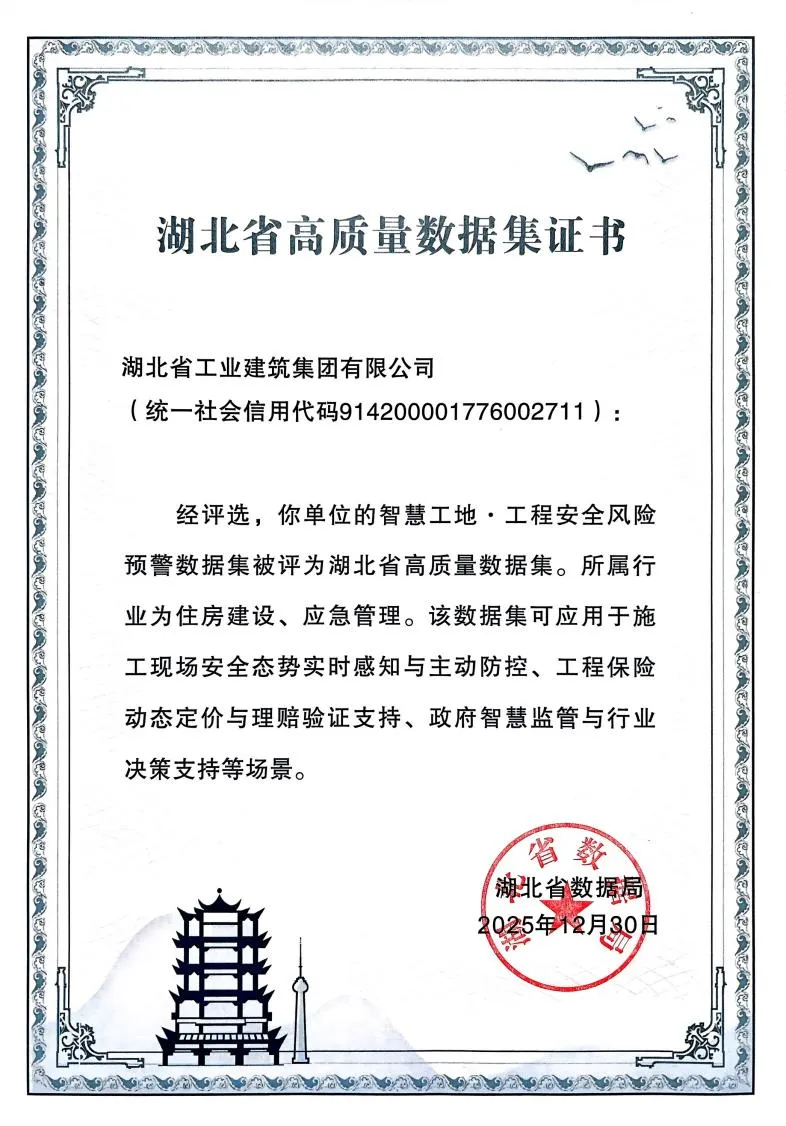 近日,湖北省数据局发布了第三批湖北省高质量数据集名单,太阳集团tcy8722自主研发的“智慧工地·工程安全风险预警数据集”成功入选。这不仅是对该数据集合规性、数据质量及应用价值的高度认可,更彰显了太阳集团tcy8722在工程建设数字化、智能化领域的扎实实践与领先实力。